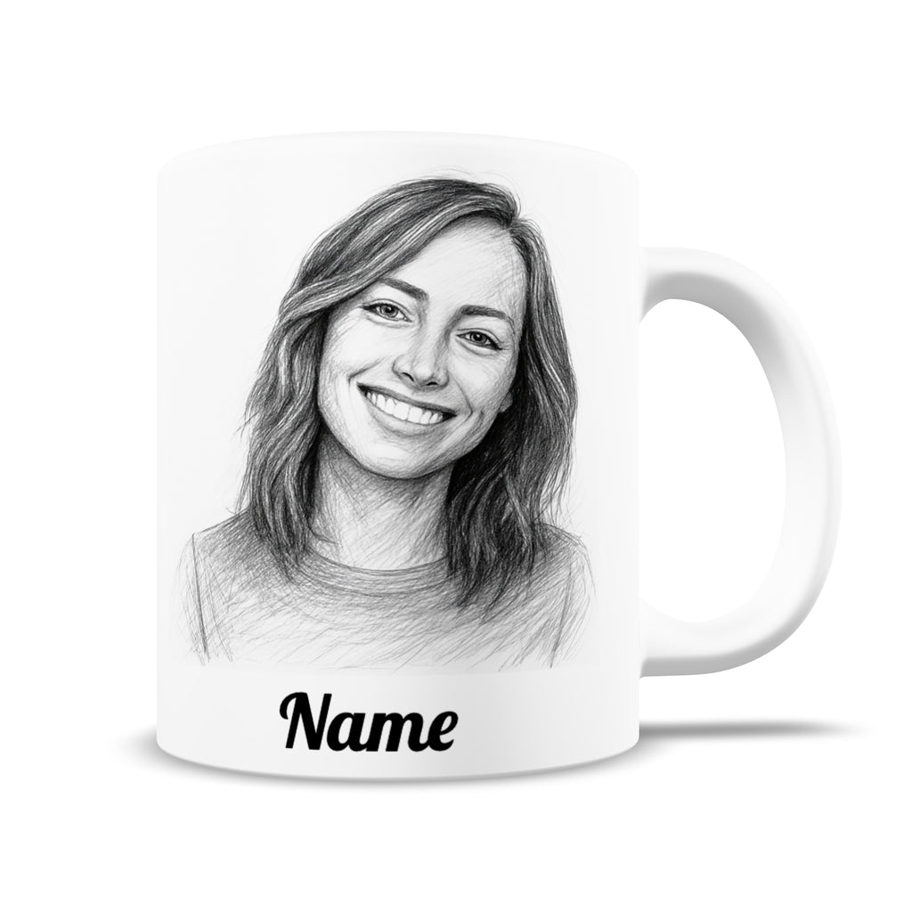 Enjoy your favorite beverage from a custom-designed ceramic mug featuring a realistic pencil drawing created in meticulous detail from your photo. A unique work of art – perfect for home, the office, or as a stylish gift.