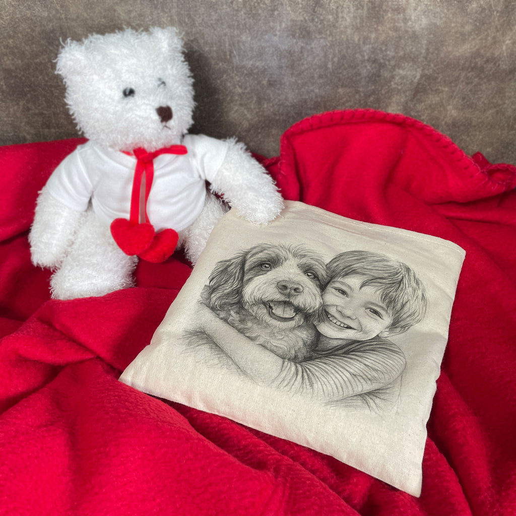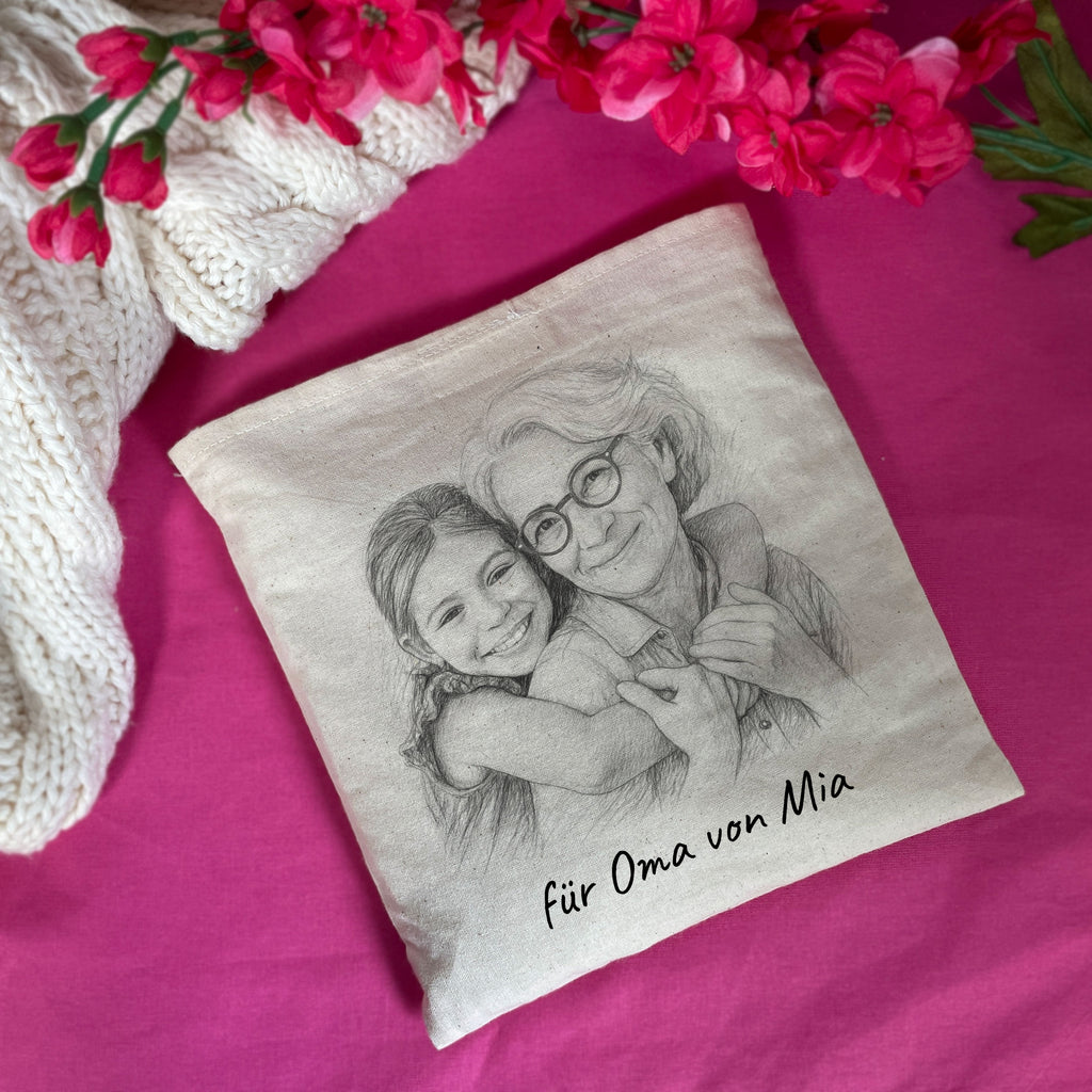 ✏️ Simply upload your photo and receive a fine, detailed pencil drawing that will be printed exclusively on your cherry pit pillow. This creates a stylish one-of-a-kind piece – classic, modern and full of personality.