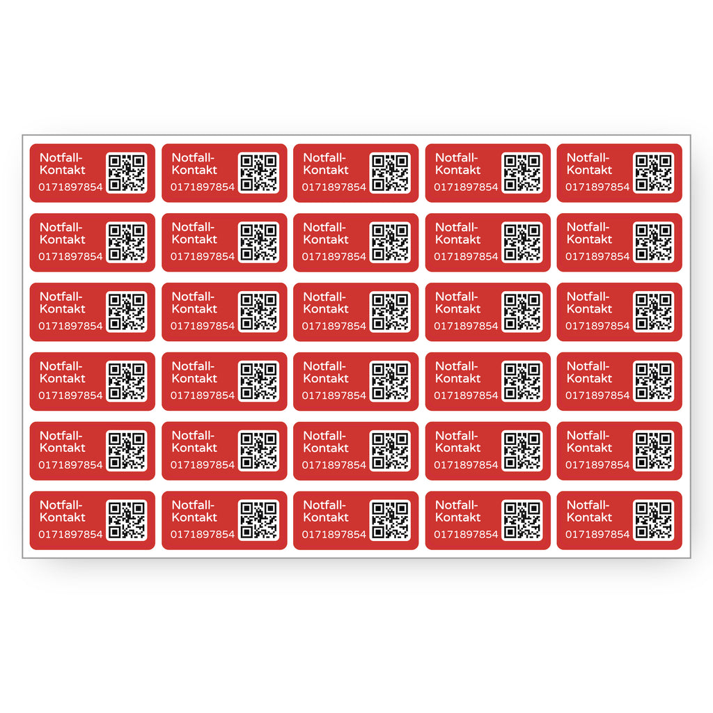 Ensure quick reachability in an emergency – with personalized emergency contact stickers in the handy format 30 × 13 mm.