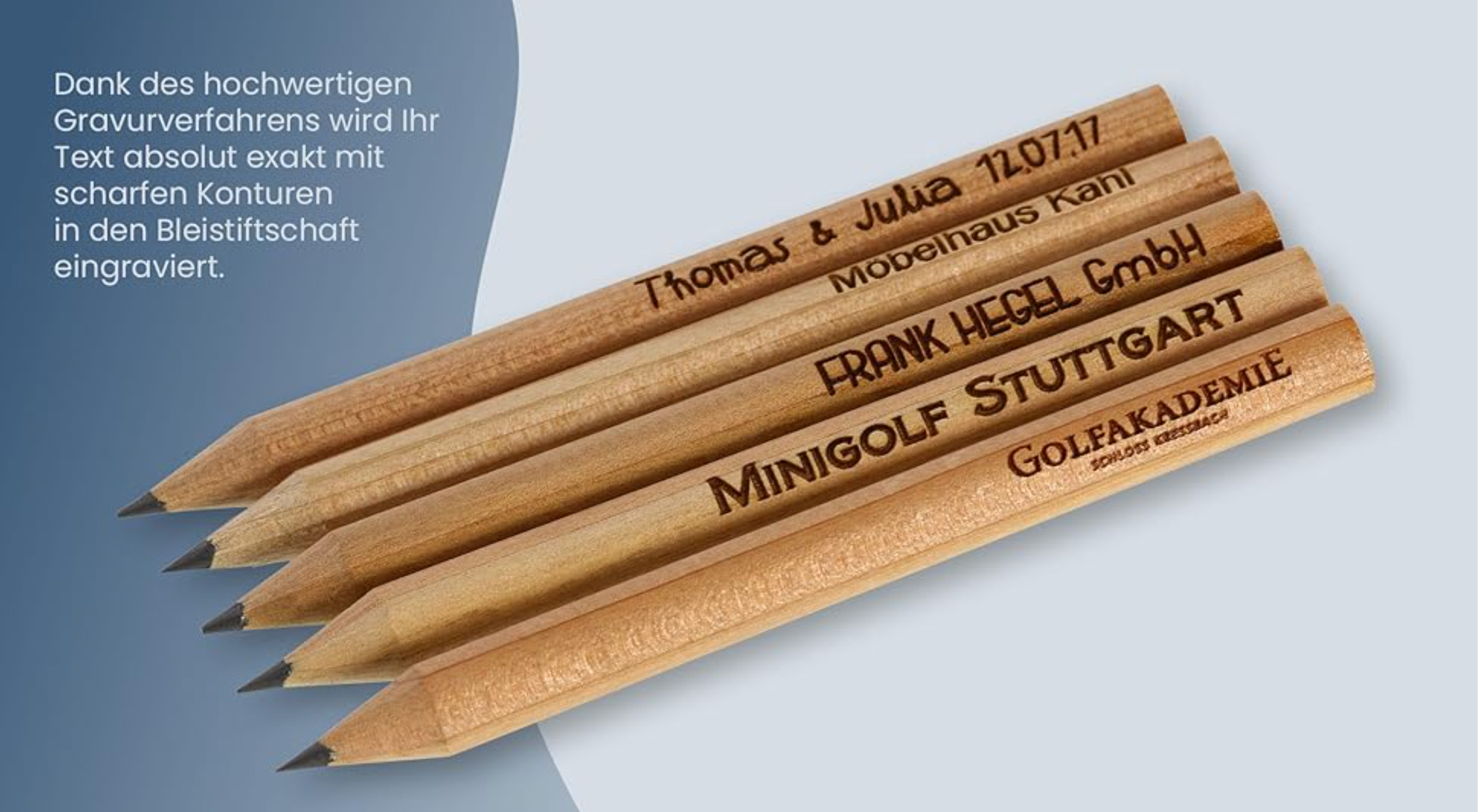 Your engraved triangular pencils made from natural wood are practical, child-friendly and simply beautifully personal. You can have them customized individually – with a name, small motifs or even a logo. This transforms a simple pencil into a unique favorite pencil that won't get lost as easily and is immediately recognizable.