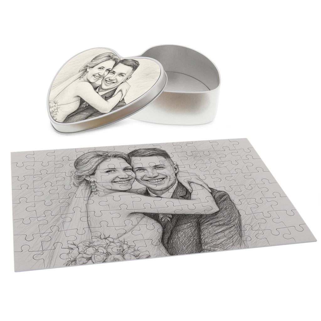Puzzle with Pencil Drawing and Text (incl. Heart Box – 96 Pieces)