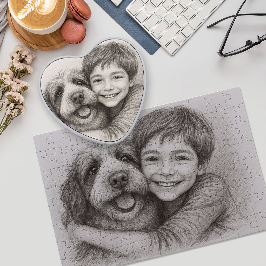 🧩 Customizable Puzzle – Pencil drawing created from your uploaded photo