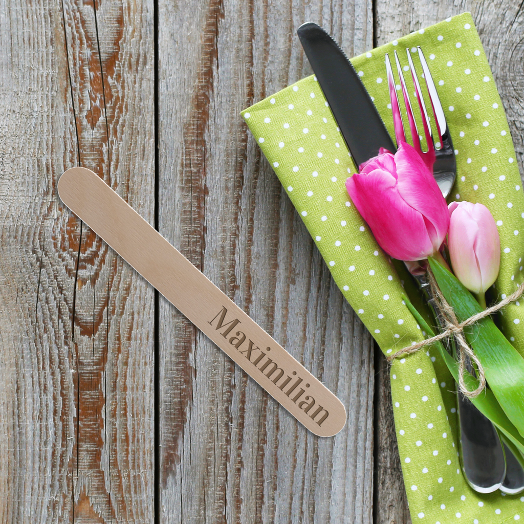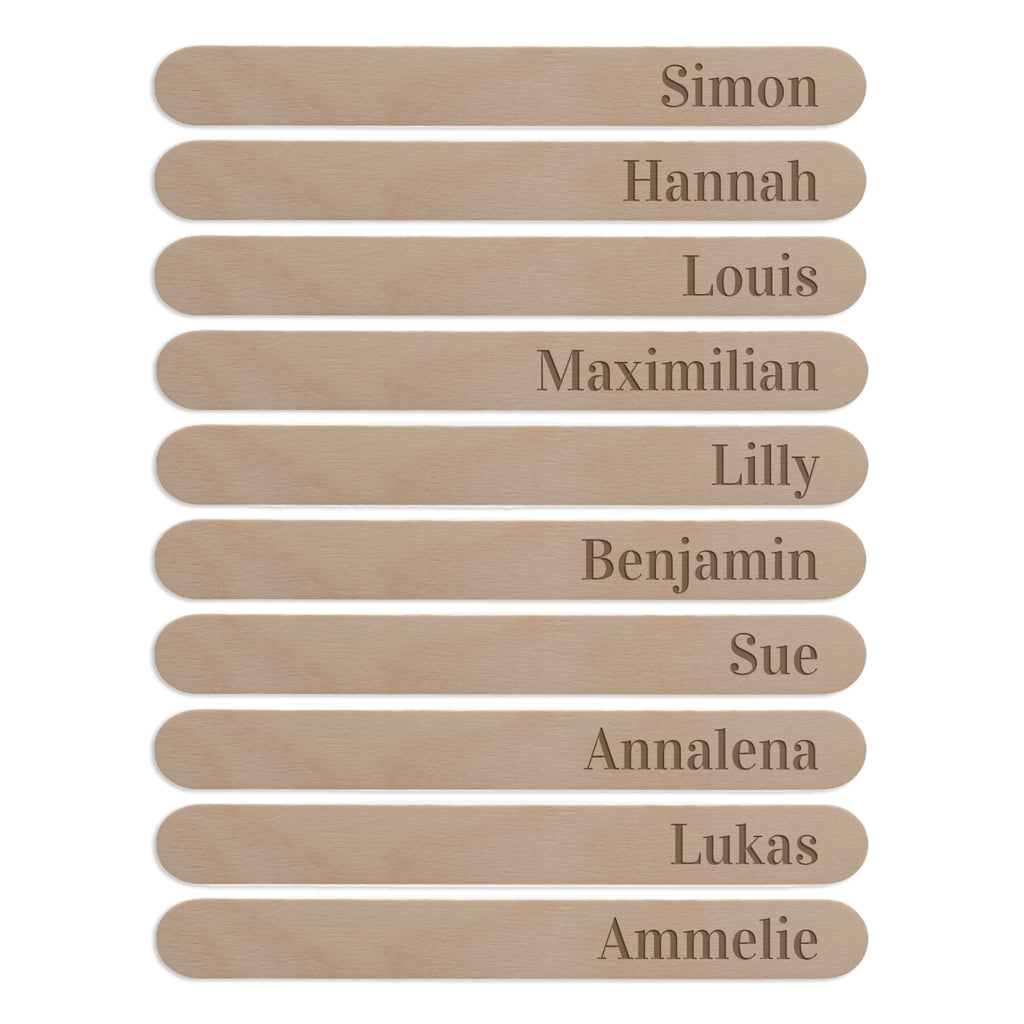 Choose natural materials, versatility and a personal touch: Our wooden popsicle sticks with custom engraving are perfect for craft projects, plant labels, decorations or creative gift ideas. The smooth, untreated natural wood feels high-quality and showcases your engraving beautifully.