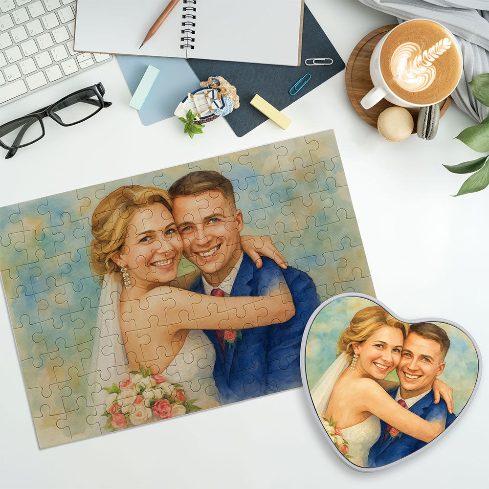 🧩 Puzzle personnalisable – dessin à l'aquarelle créé à partir de votre photo téléchargée