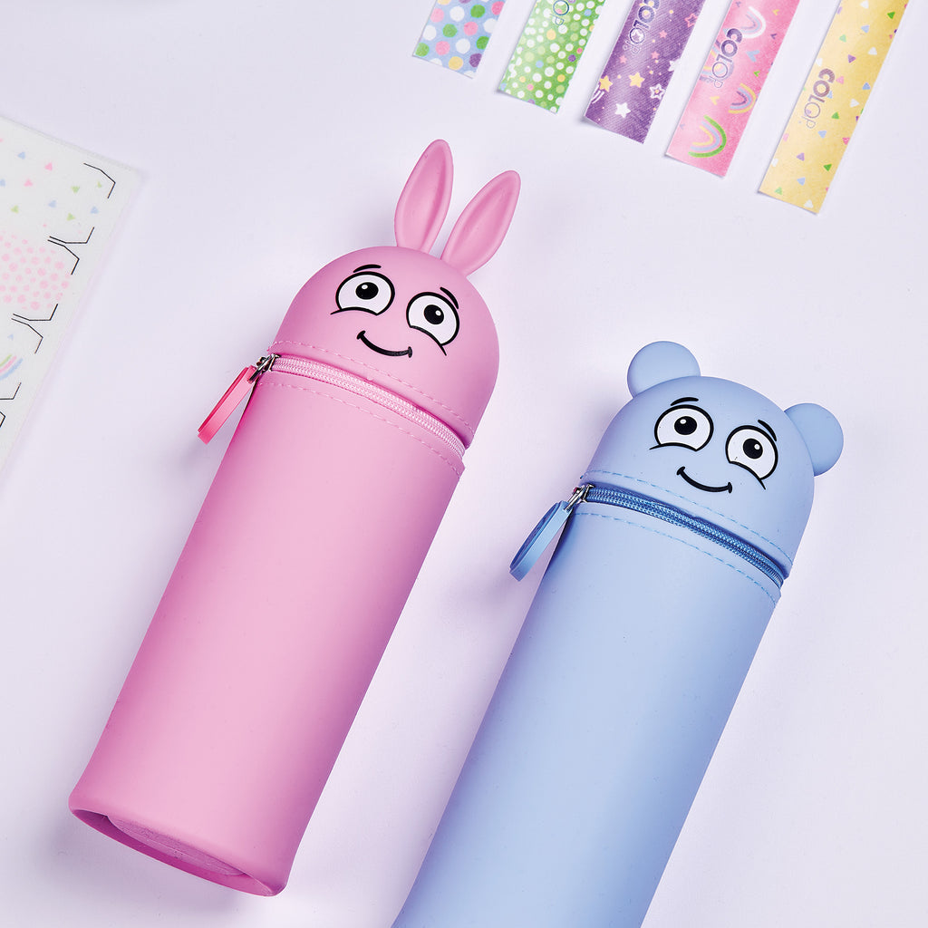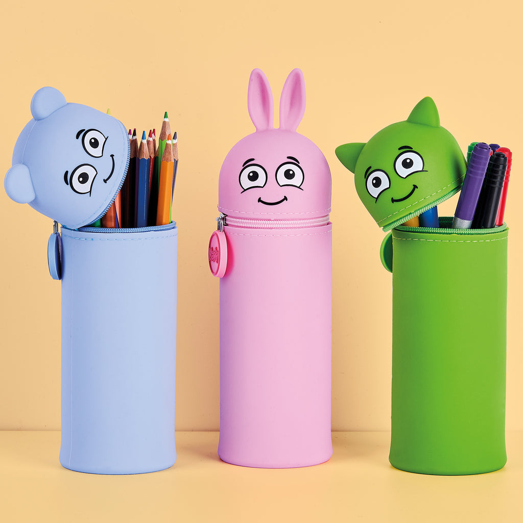 Disponible en trois couleurs attrayantes – vert, rose et bleu – les trousses MARKY ajoutent aussi une touche visuelle. Chaque modèle a des détails « oreilles » différents qui donnent à la trousse un caractère unique. Chaque pièce devient ainsi un véritable accroche-regard sur le bureau ou dans le sac.